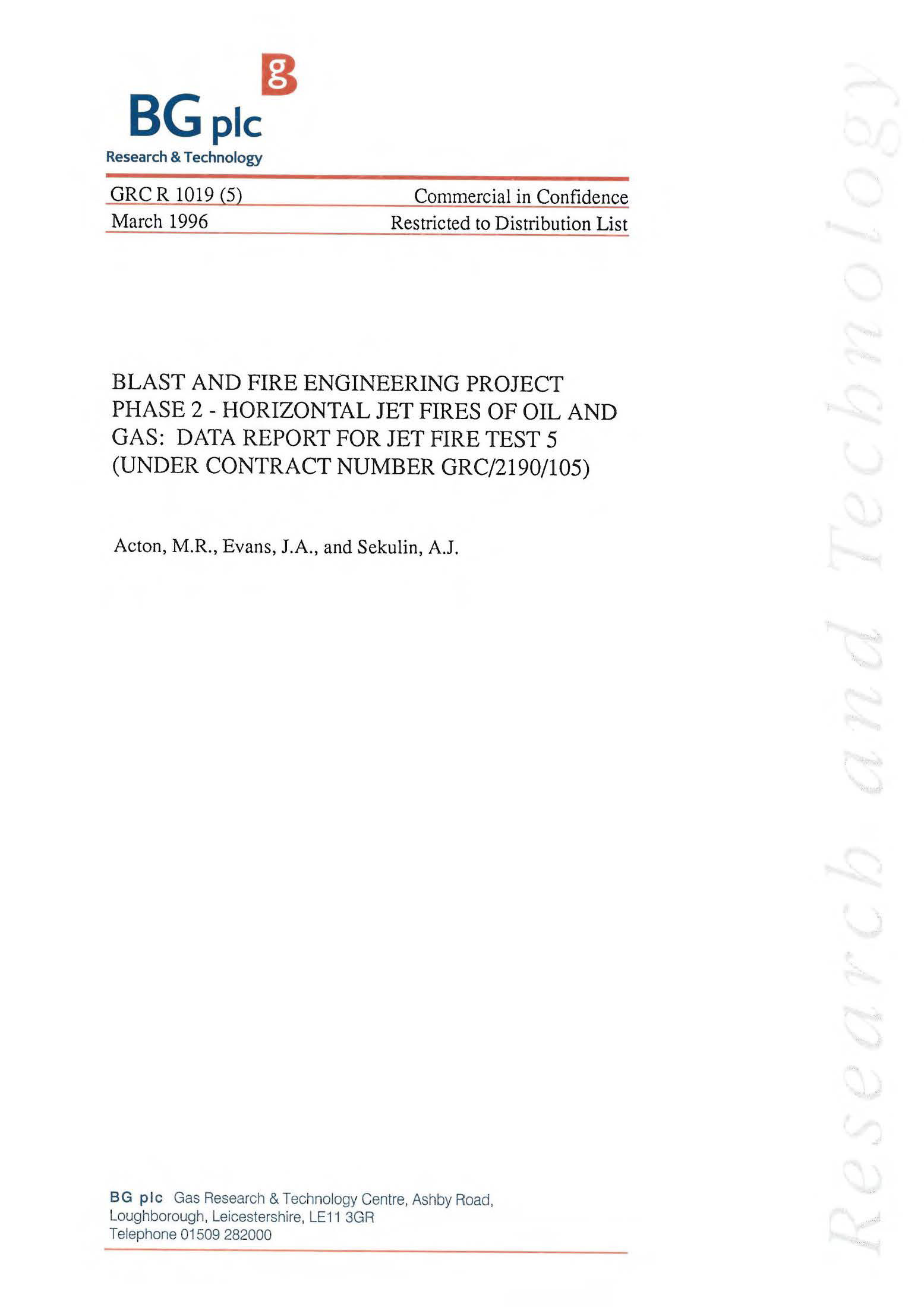 A programme of jet fire tests was undertaken by British Gas over a two-month period, between May and June 1995, under contract to the Steel Construction Institute as part of the industry sponsored ‘Blast and Fire Engineering Project for Topside Structures’. An overview report has been prepared which describes the measurement techniques and equipment used. The overview report also contains a summary of the data from each of the tests. In addition, an individual data report has been prepared for each test. This data report contains the detailed results of measurements taken during Test 5.