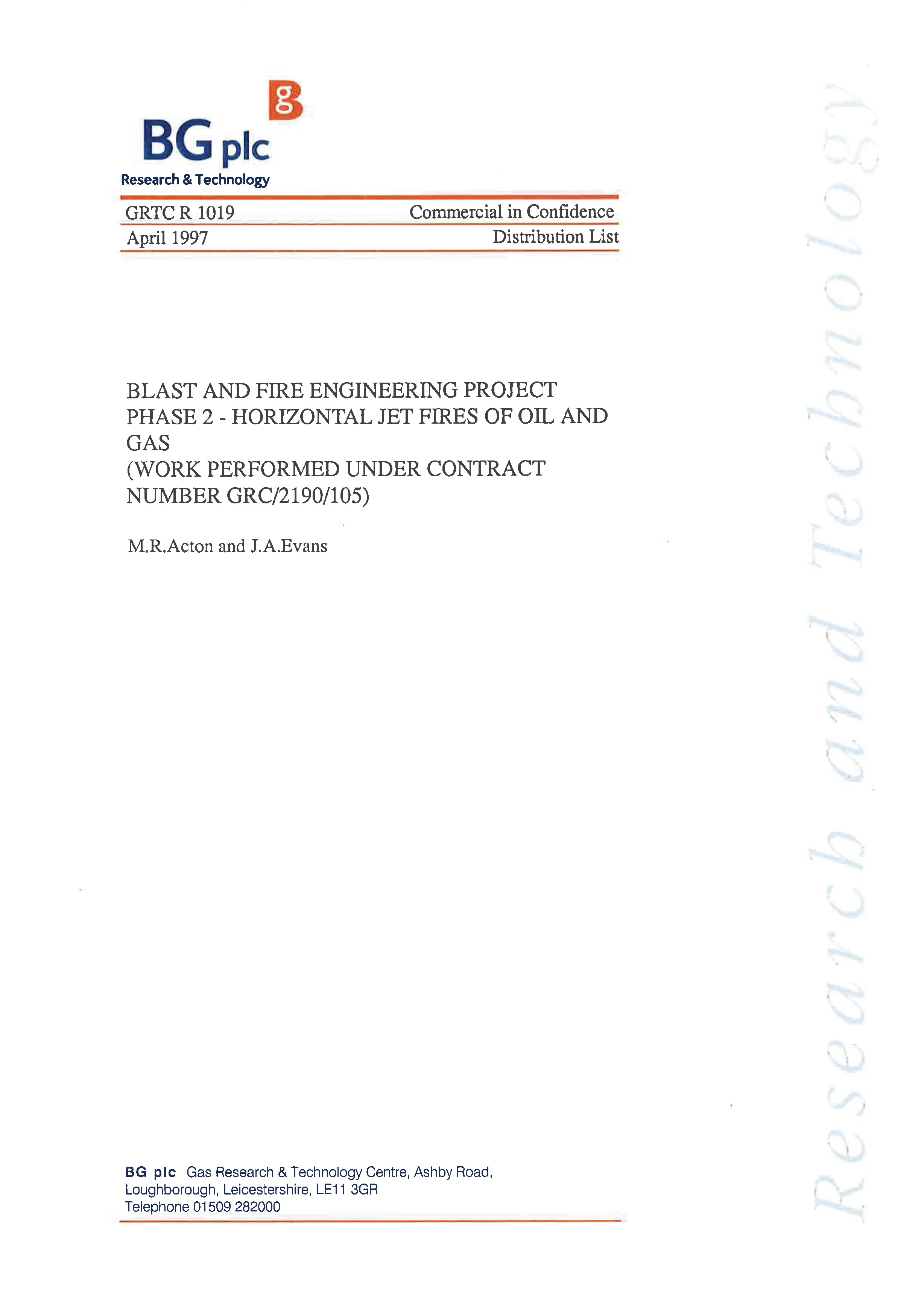 Horizontal Jet Fires of Oil and Gas - Summary Report for Jet Fire Tests