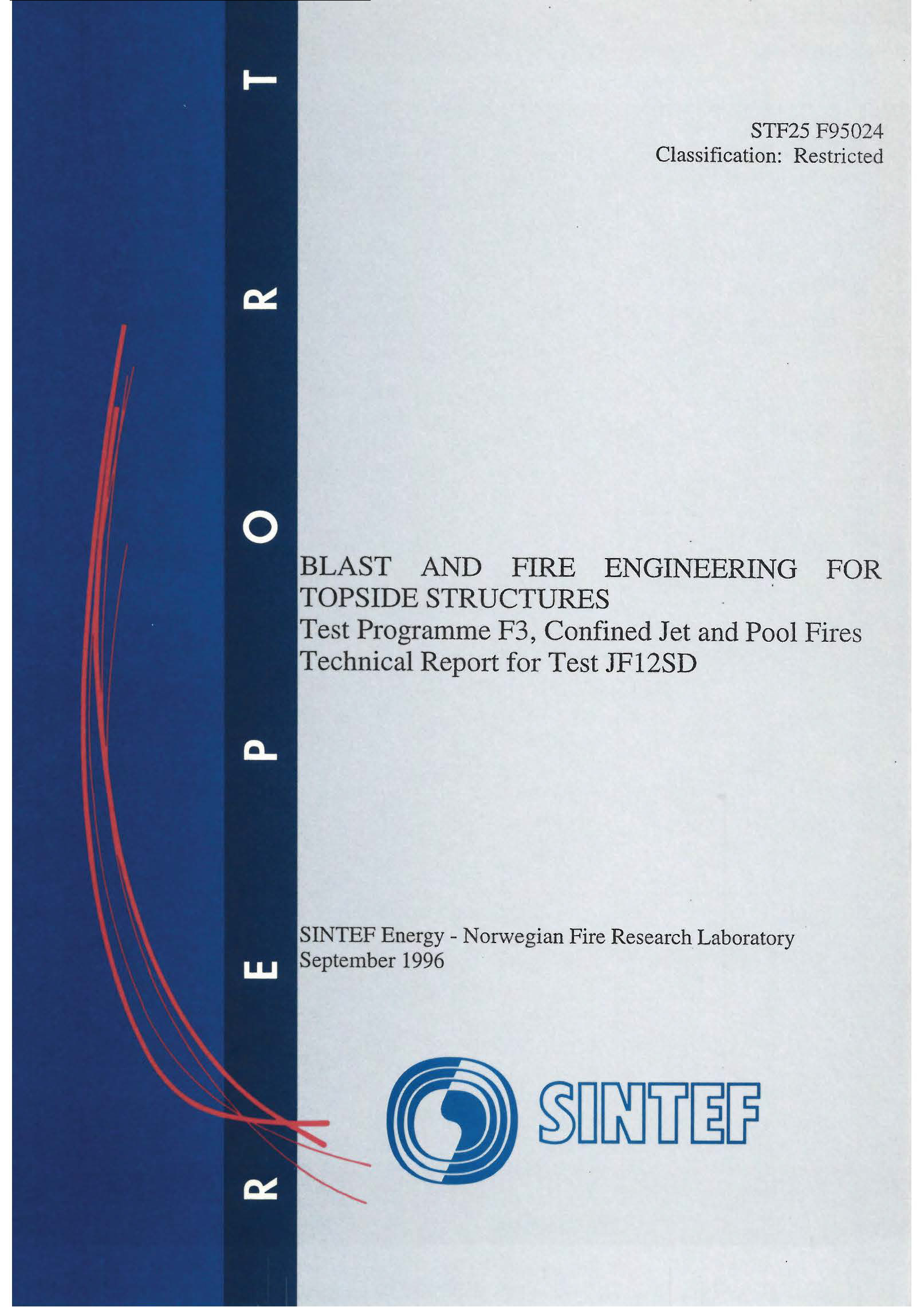 SINTEF Energy - Norwegian Fire Research Laboratory (NBL) has the task to carry out a series of fire tests with confined jet and pool fires, according to the test programme F3 of Blast and Fire Engineering for Topside Structures. This report is for jet fire test JF12SD.