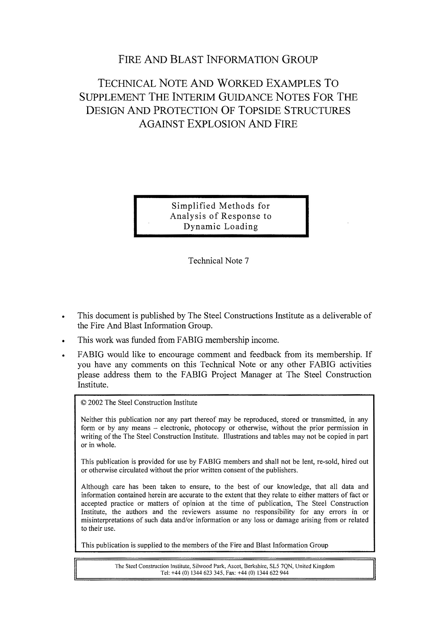 This Technical Note provides a new SDOF model that addresses the first three shortcomings of the BIGGS model, is sophisticated enough to capture the main effects ignored by BIGGS, yet simple enough for practical application in a design office environment. The elastic and elasto-plastic stages are considered separately from the perfectly plastic and subsequent catenary stage.