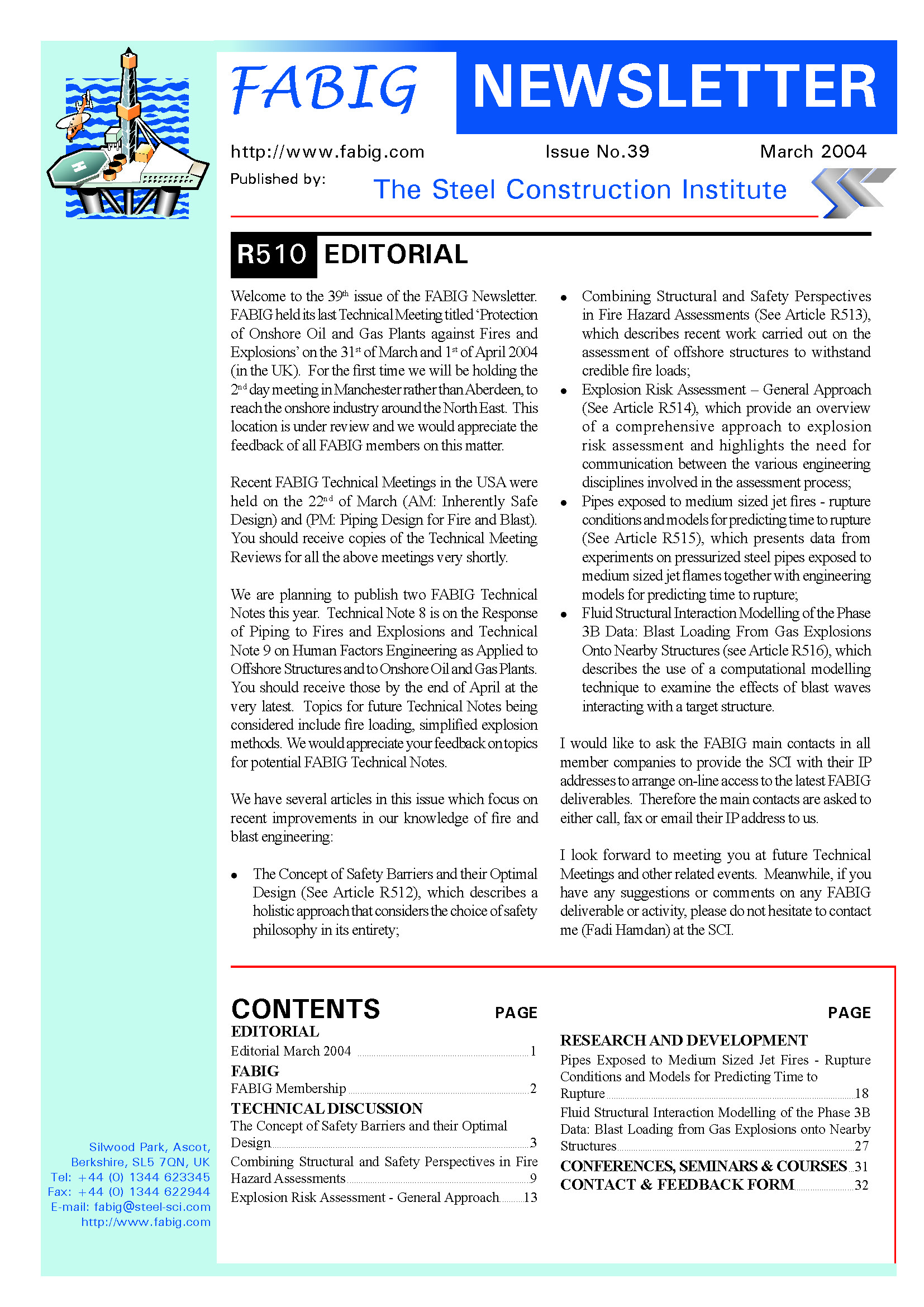 This FABIG Newsletter comprises the following: