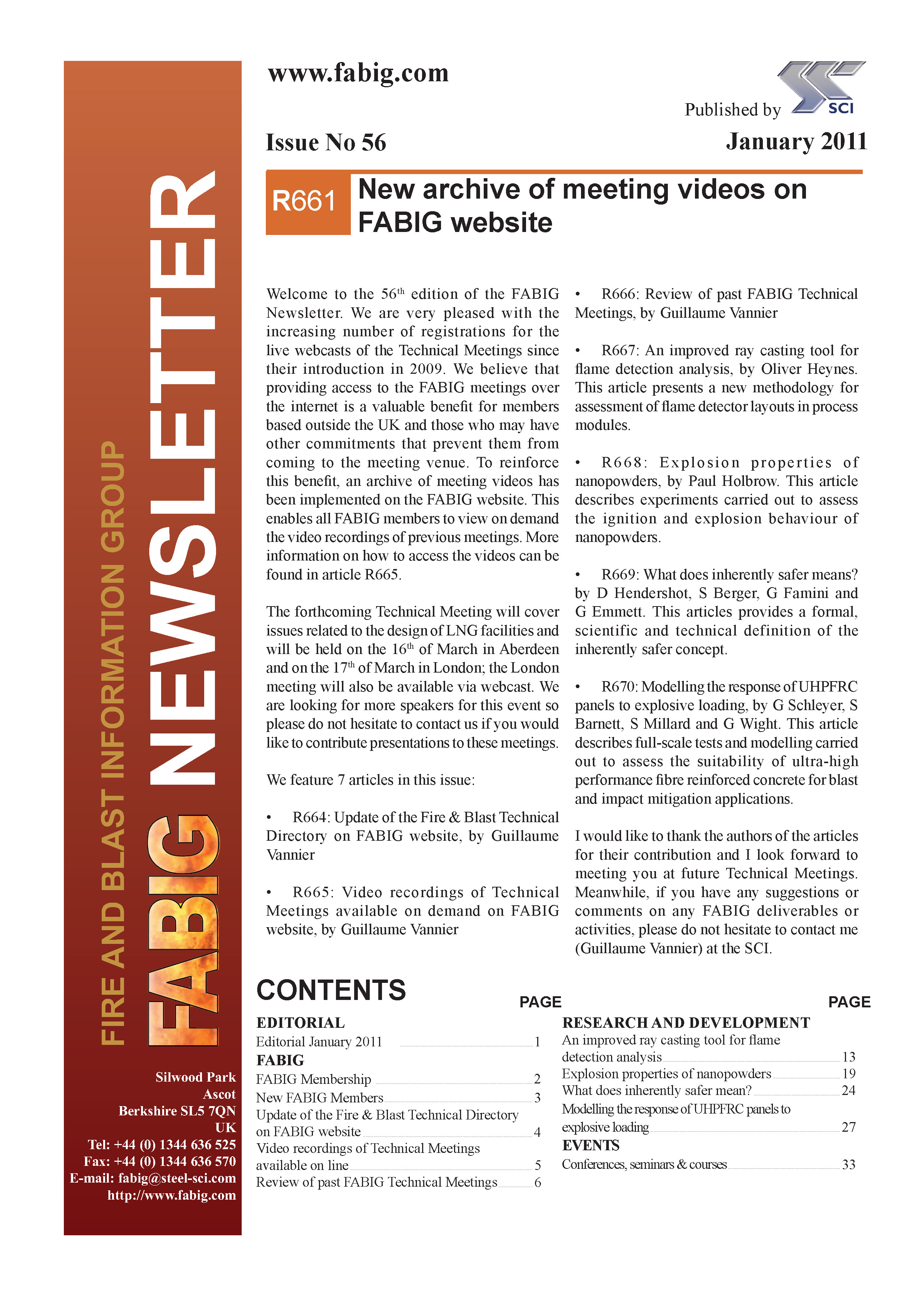 - Update of the ‘Fire & Blast Technical Directory’ on FABIG website